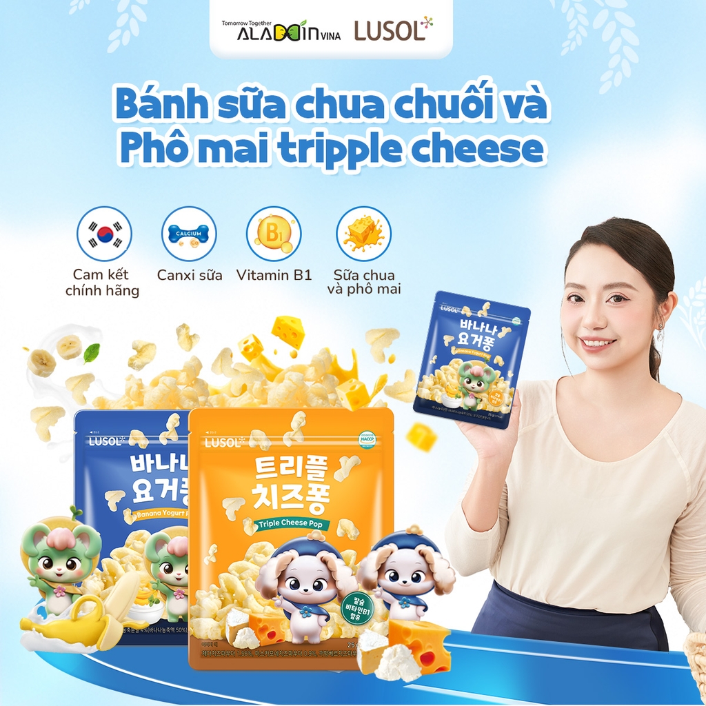 - Tên sản phẩm: Combo bánh ăn dặm Lusol – Vị sữa chua chuối & Triple Cheese