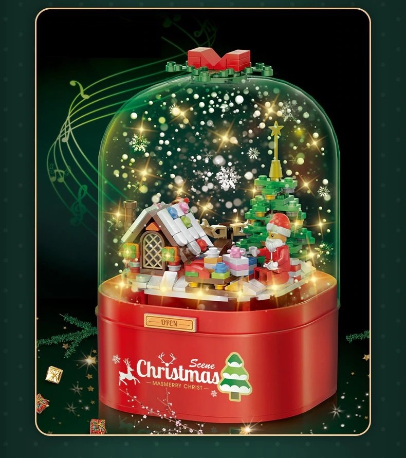 Hộp Phát Nhạc Giáng Sinh không chỉ là hộp nhạc thông thường, mà còn tích hợp như món đồ chơi nhỏ cho bé,nhiều những miếng lego nhỏ, các bé sẽ phải lắp ghép những miếng lego để tạo thành một mô hình có thể tích hợp 3 hiệu ứng: ĐÈN SÁNG - PHÁ NHẠC- PHUN TUYẾT, chắc chắn các bé sẽ rất mê mẩn với món quà này.