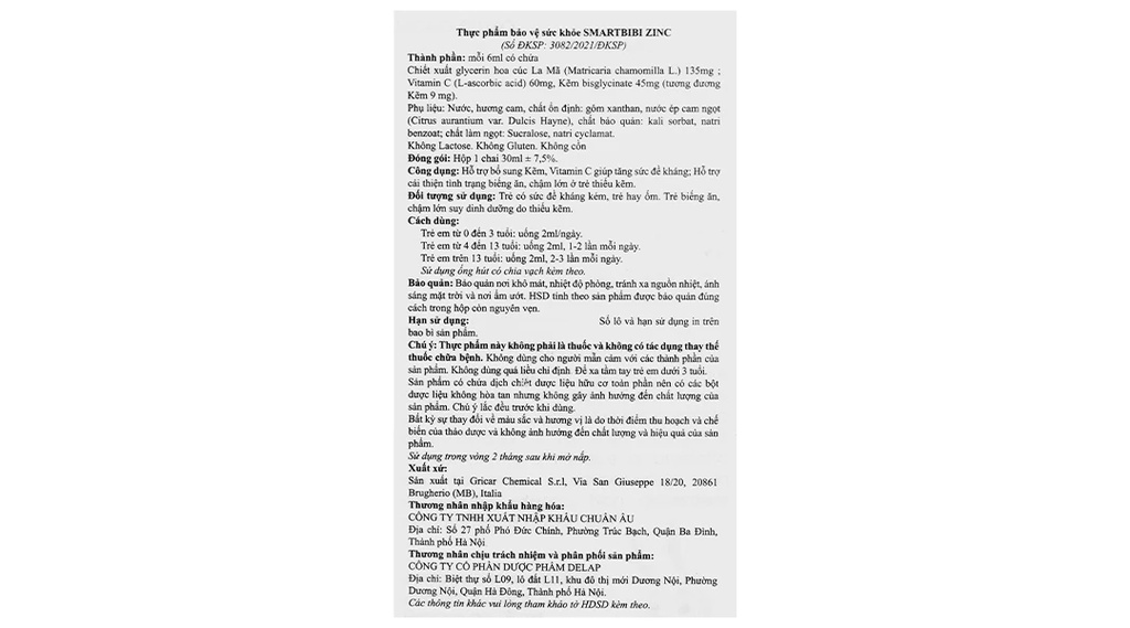 (theo GMP, ISO 22000); không chứa cồn và các thành phần dễ gây dị ứng như gluten, lactose nên an toàn với trẻ nhỏ từ sơ sinh.