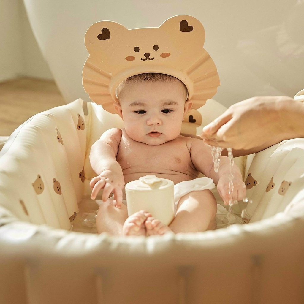 - Mũ chắn nước có tác dụng giúp ngăn chặn nước hoặc xà phòng trong quá trình tắm gội vào mắt của bé, bên cạnh đó còn rất hữu dụng để giúp tránh tóc rơi vào mắt mỗi khi bé đi cắt tóc.