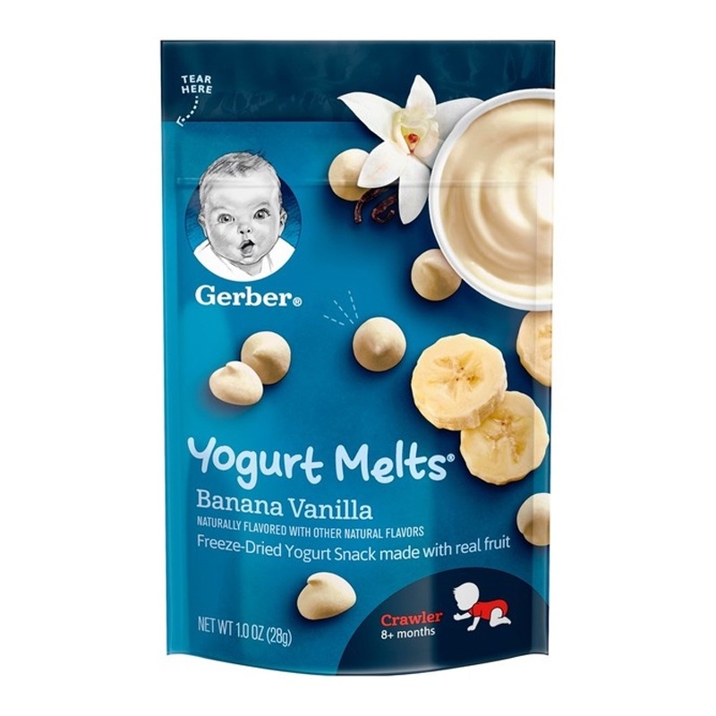 Sữa chua khô Gerber vừa tập cho bé làm quen với việc nhai, nhặt, cầm, nắm vừa bổ sung lượng vitamin, khoáng chất bị thiếu hụt trong khẩu phần ăn dặm hằng ngày và rất có lợi cho hệ tiêu hoá của bé !