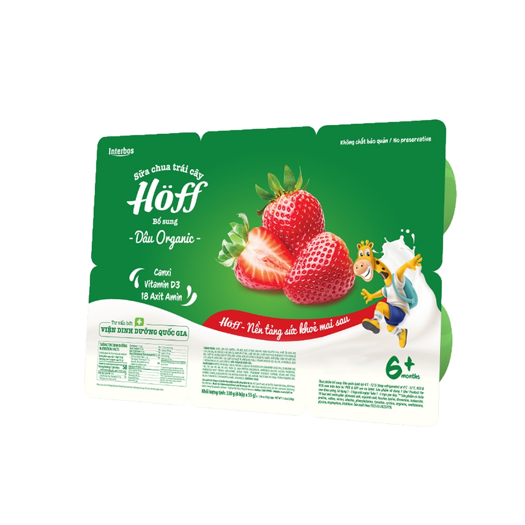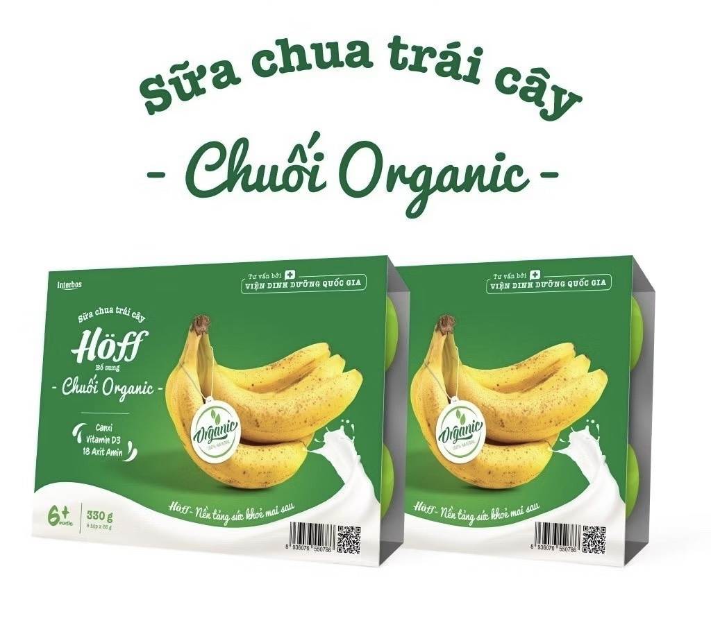 Sữa chua hoa quả Hoff Organic vị chuối và dâu là dòng sản phẩm sữa chua trẻ em cao cấp của Hoff được các chuyên gia dinh dưỡng tại viện Dinh Dưỡng Quốc Gia đánh giá cao về dòng thực phẩm công thức cho bé. Sản phẩm sử dụng nguồn nguyên liệu chuối Organic, giám sát bởi tiêu chuẩn hữu cơ được công nhận trên toàn thế giới cùng nguồn dưỡng chất đa dạng, phù hợp với trẻ em Việt Nam giúp trẻ phát triển toàn diện về thể chất và trí tuệ.