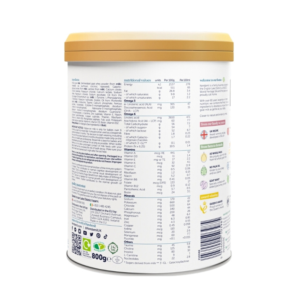 - Sữa dê Kendamil với đạm A2 nguyên kem được sản xuất hoàn toàn tại Anh, Theo tiêu chuẩn EU nghiêm ngặt. Và niềm tự hào là nguồn sữa được lấy từ các trang trại gia đình ở vùng Cumbria, Somerset,Yorkshire.