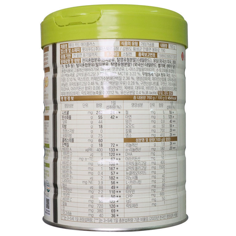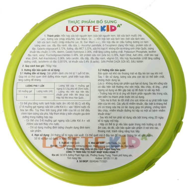 Kể từ 01/11/2021, sản phẩm Kid Power A+ được đổi tên thành Lotte Kid A+, với thiết kế mới, khối lượng nâng lên 760g và bổ sung thêm IgG, Lactoferrin – hai thành phần quý giá giúp nâng cao sức đề kháng và bảo vệ trẻ khỏi vi khuẩn, virus.