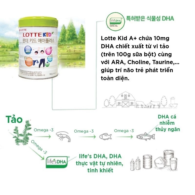 Lotte Kid A+ là dòng sữa công thức cao cấp đến từ tập đoàn Lotte Foods – Hàn Quốc, được nghiên cứu đặc biệt dành cho trẻ trong độ tuổi từ 1 đến 10. Sản phẩm nổi bật với nguồn nguyên liệu 100% hữu cơ, không sử dụng kháng sinh, không hormone tăng trưởng trong toàn bộ quá trình chăn nuôi và sản xuất – điều mà nhiều bậc cha mẹ lo ngại khi lựa chọn sữa cho con.