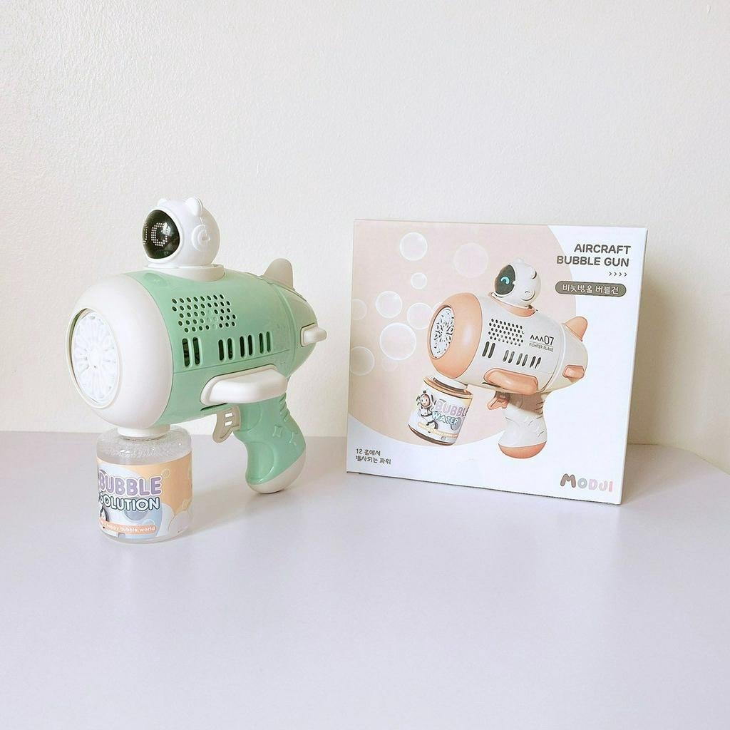 - Sản phẩm gồm: 1 súng phun bóng, 1 lọ nước bong bóng.