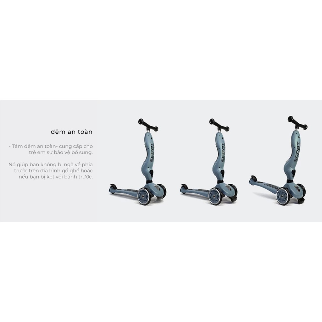 Đặc điểm nổi bật của sản phẩm:- Scoot & Ride là một chiếc xe tay đẩy chân 3 bánh & đồ chơi dành cho bất kỳ trẻ nào. - Mẫu xe chất lượng cao này phù hợp với trẻ em từ 1 tuổi và có tay lái điều chỉnh độ cao vì thế xe có thể bên cạnh bé trong suốt quá trình phát triển. - Được làm từ vật liệu chất lượng cao, miếng đệm an toàn được cấp bằng sáng chế hướng về phía trước giảm thiểu ngã khi chơi . - Highway kick 1 là một trò chơi ngoài trời tuyệt vời để đưa con bạn ra ngoài không khí trong lành và rèn luyện sức khỏe ngay từ khi còn nhỏ. Khả năng giữ thăng bằng tuyệt vời và công nghệ lái ổn định trọng lượng giúp tránh những cú ngoặt đột ngột.Công dụng:- Giải tỏa áp lực, stress- Tăng cường giao tiếp xã hội khi chơi cùng các bạn- Phát triển khả năng cân bằng- Giúp bé phát triển các kỹ năng vận động rất nhiều.- Rèn luyện kỹ năng phản xạ- Tiêu hao năng lượng dư thừa- Tiêu hóa tốt, bé ăn ngon, ngủ tốt, tăng cân đềuLưu ý:- Điều thú vị ở chiếc xe này là bé có thể ngồi và chuyển sang chạy Scooter được, chỉ cần tháo lắp hết sức đơn giản.- Khi bé còn nhỏ thì để ở chế độ ngồi cho bé và khi bé lớn tầm 4 tuổi thích chơi Scooter thì bố mẹ có thể chuyển sang dạng Scooter mà không cần phải mua thêm nữa!!!!- Trọng lượng của trẻ khi xe ở dạng ngồi là từ 20kg trở xuống. Trọng lượng trẻ khi chuyển sang chơi Scooter là 50kg trở xuống.Thông số chi tiết:- Độ tuổi: 1 tuổi >- Trọng lượng người dùng tối đa: 50kg (đứng), (20kg trên ghế)- Chiều cao: 82 – 118 cm- Chiều cao tay lái: 57-64cm Có thể điều chỉnh hoàn toàn- Chiều cao ghế: 22,5-29cm,- Bánh xe: Bánh trước 2x 120mm PU, Bánh sau 80mm- Tổng trọng lượng: 4kg
